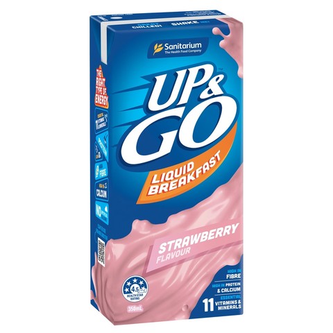 Sanitarium UP and Go สตรอเบอรี่เหลวสำหรับอาหารเช้าที่มีคุณค่าทางโภชนาการนมอาหารเครื่องดื่มนมผลิตภัณฑ์เหลว